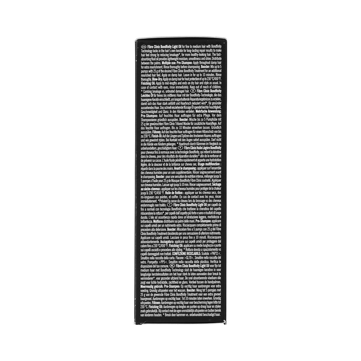 Το Fibre Clinix Bondfinity Light Oil, για λεπτά έως κανονικά μαλλιά, είναι ένα ανάλαφρο έλαιο επανόρθωσης πολλαπλών χρήσεων που προσφέρει ελαφριά ενυδάτωση.