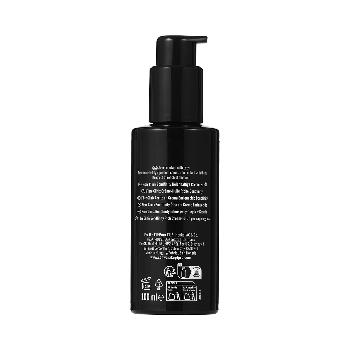 Το Fibre Clinix Bondfinity Rich Cream-to-Oil με ενσωματωμένη Τεχνολογία BONDFINITY που κλειδώνει μέσα την κερατίνη της τρίχας, είναι ένα πλούσιο έλαιο βαθιάς έπανόρθωσης πολλαπλών χρήσεων για χονδρά μαλλιά. Η σύνθεσή του με σύμπλεγμα 5 ελαίων προσφέρει απαλότητα και λάμψη στην επιφάνεια της τρίχας και περισσότερη θρέψη στο εσωτερικό μέρος της ίνας της τρίχας ενώ προλαμβάνει και επανορθώνει τη φθορά της τρίχας με αποτελέσματα με μεγάλη διάρκεια.
