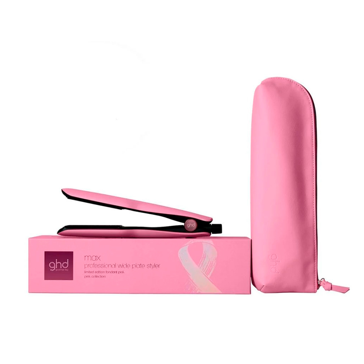 Το επαγγελματικό ghd max styler με πλάκες αυξημένου πλάτους, στην αποκλειστική limited edition απόχρωση σε ροζ φοντάν, συνοδεύεται από μια ασορτί θερμοανθεκτική θήκη¹.