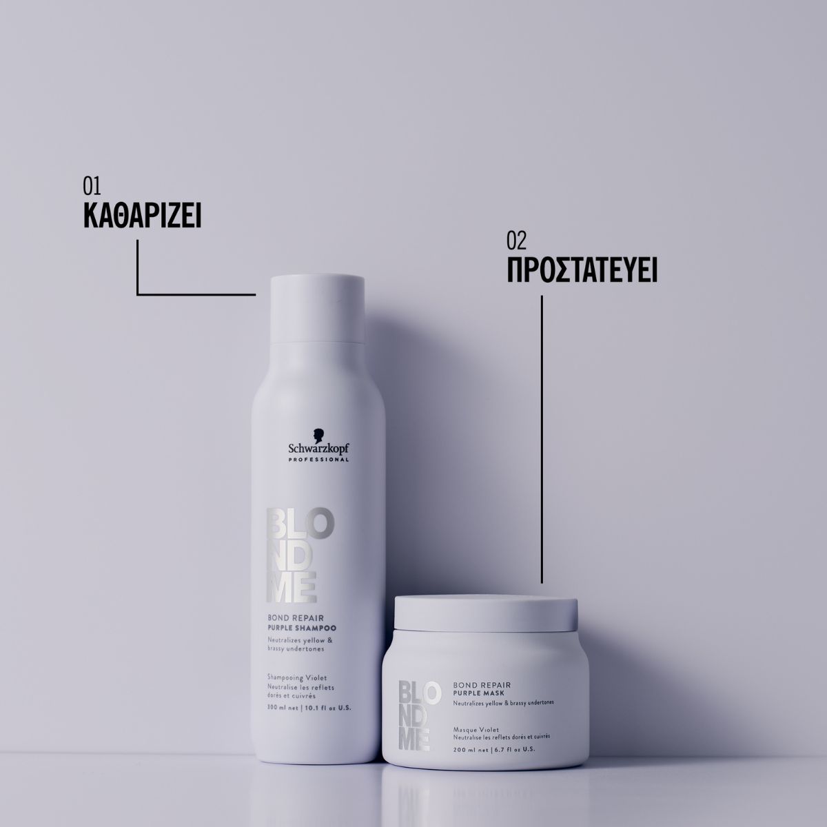 Η σειρά Purple Toning Bond Repair αφαιρεί τους ανεπιθύμητους κίτρινους δευτερεύοντες τόνους και αποτρέπει τους χάλκινους τόνους, διατηρώντας μια φρέσκια ψυχρή κατεύθυνση τόνου για βελτιωμένη ξανθιά διαύγεια, χωρίς αλλαγή του χρώματος των μαλλιών. Οι συνθέσεις με Bond Repair τεχνολογία ενισχύουν την τρίχα χτίζοντας εσωτερικούς δεσμούς, αποκαθιστώντας φθορές που ισοδυναμούν με δυο υπηρεσίες ξανοίγματος μετά απο μία μόνο χρήση.