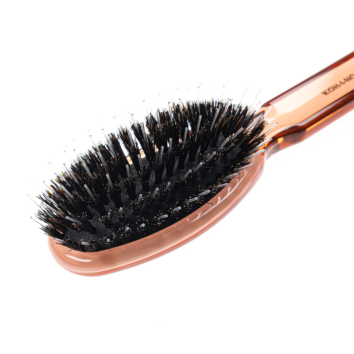 Κατασκευασμένη από έγχρωμο ABS (θερμοπλαστικό υλικό που σημαίνει είναι ανθεκτικό στη διάβρωση, θερμότητα, έχει υψηλή βαθμό ελατστικότητας και είναι μη τοξικό, ασφαλές ακόμα και για παιδιά) συνδυάζει τη δύναμη περιποίησης των τριχών αγρι όχοιρου με τη δύναμη ξεμπερδέματος του νάιλον για να αναδομήσει φυσικά τα μαλλιά. Είναι κατάλληλη για λεπτά έως μεσαία μαλλιά, αλλά και για extensions, tapes και τρέσες. Αυτή η βούρτσα προσφέρει απαλό μασάζ στο τριχωτό της κεφαλής, αναζωογονώντας τα ξηρά και ταλαιπωρημένα μαλλιά. Το ελαστικό μαξιλάρι παγιδεύει τον αέρα και συμπιέζεται κατά το βούρτσισμα των μαλλιών, κατανέμοντας την πίεση ομοιόμορφα σε όλο το τριχωτό της κεφαλής, διεγείροντας τη μικροκυκλοφορία και γυαλίζοντας τη ρίζα για μια φυσική λάμψη των μαλλιών. Οι τρίχες αγριόχοιρου βοηθούν στη φυσική κατανομή των ελαίων που υπάρχουν στο τριχωτό της κεφαλής σε όλα τα μαλλιά, διατηρώντας τα μαλακά, ενυδατωμένα και λαμπερά, μειώνοντας την λιπαρότητα